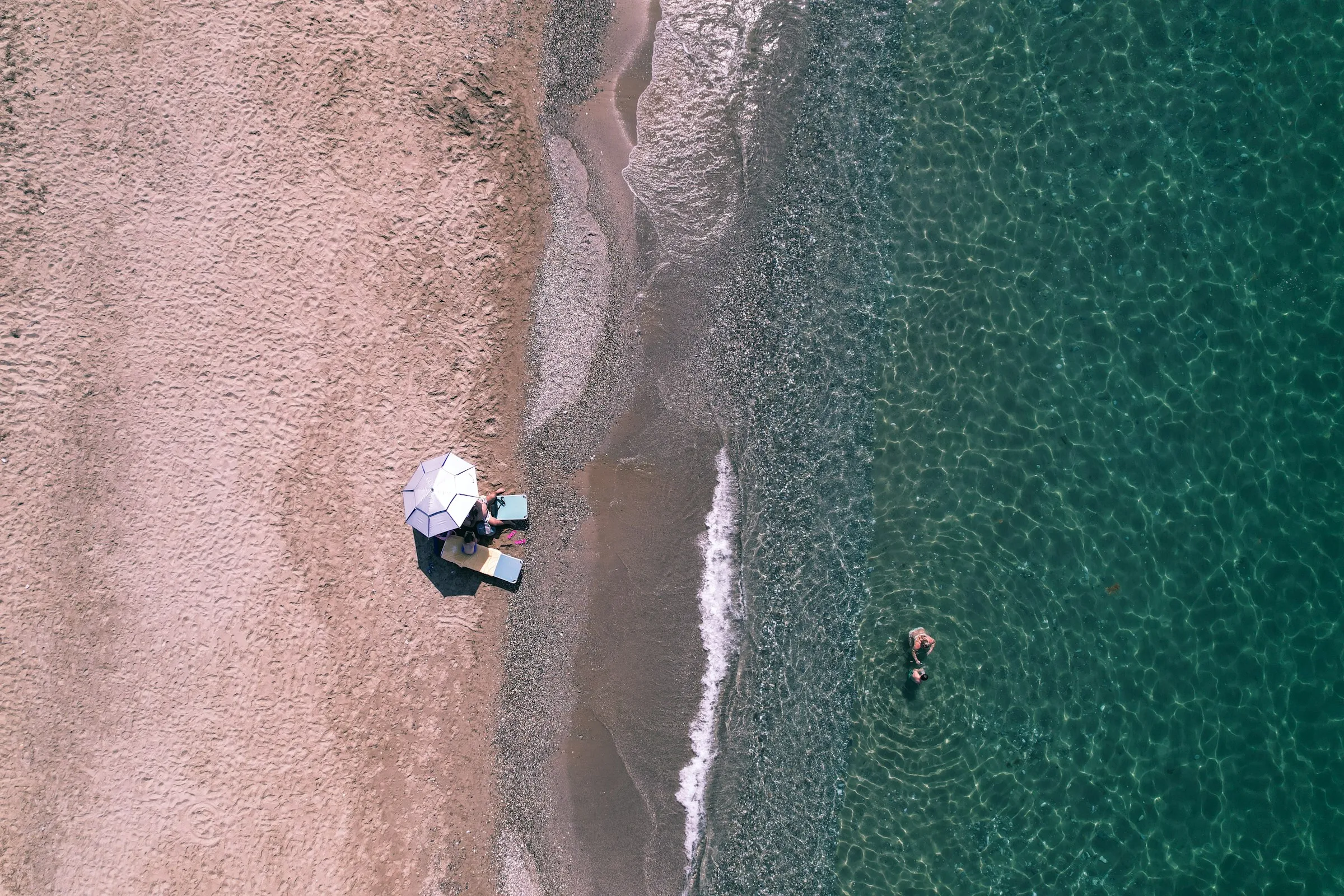 - Geropotamos beach: The beach is named after the homonym river that empties in the east end of the beach. The small beach is sandy and has crystal clear water, which is very cool because of the river, which has water all year round and forms a small deep lake near the shore. It is slightly organized with umbrellas and a canteen that offers refreshments, coffee, water and food supplies. Despite the easy access, it is always quiet and not crowded. However, the orientation of the shore makes it vulnerable to north winds.